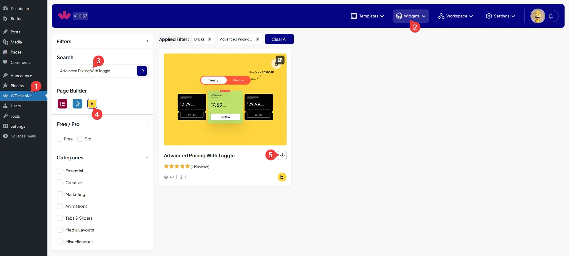 How to Use the Advanced Pricing With Toggle Element in Bricks?
