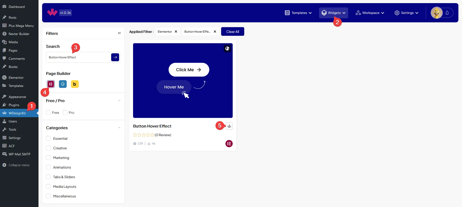 - Make sure you’ve downloaded the Button Hover Effect widget.