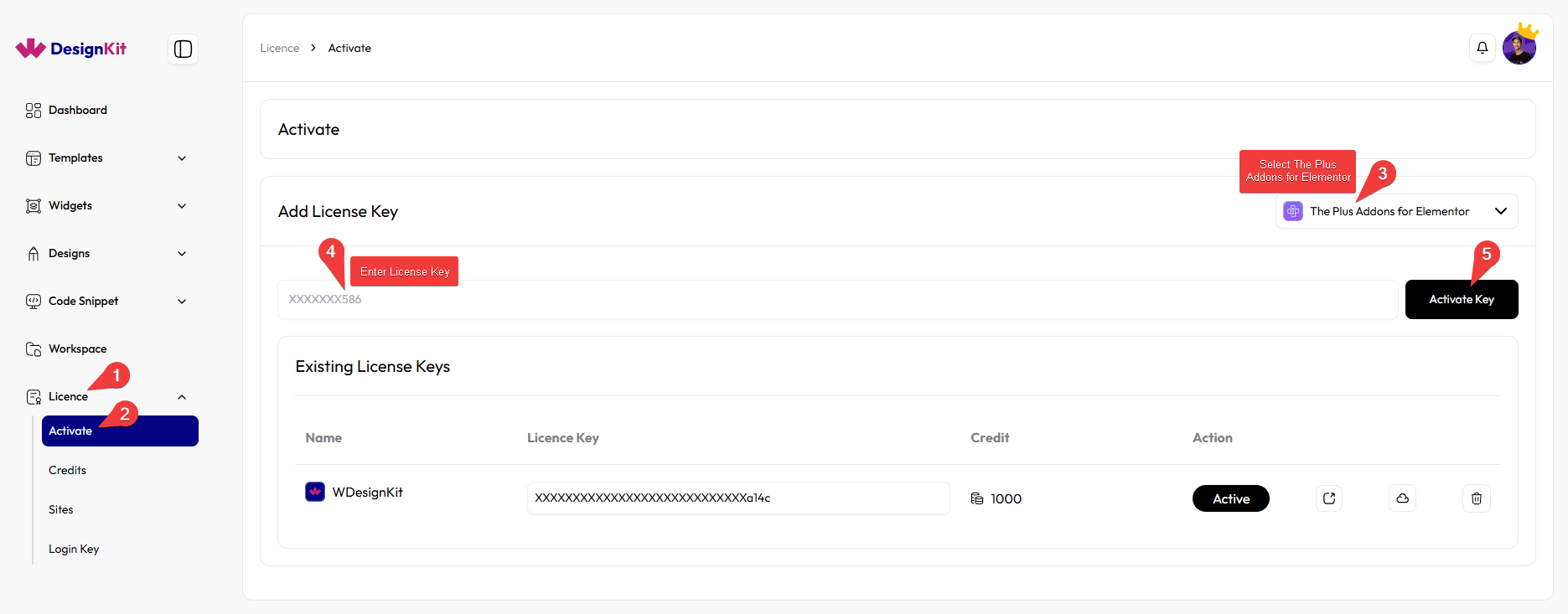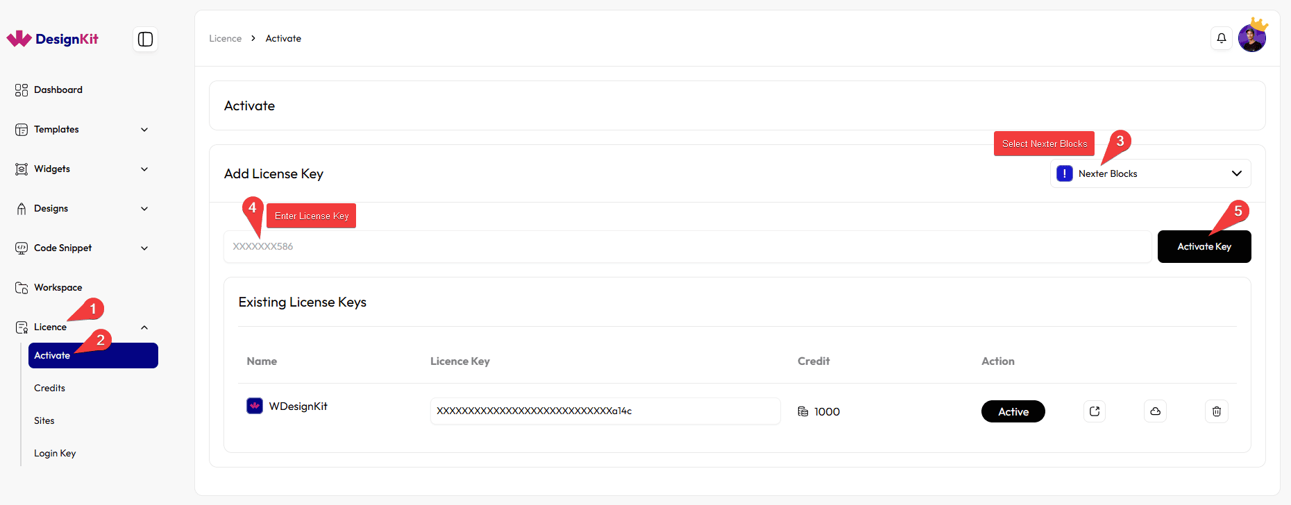 To use the templates, widgets, blocks, widget builder, and other powerful features of WDesignKit, you have to activate your WDesignKit account. There are four types of keys that you can use to activate your WDesignKit account.