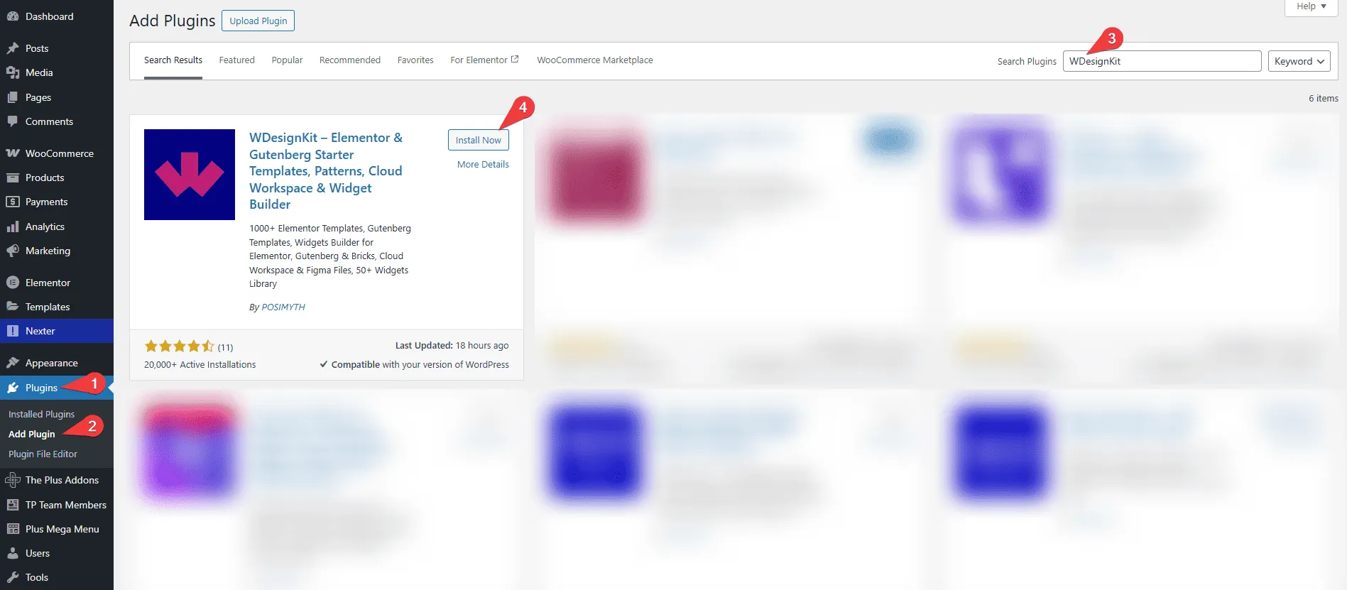 3. You’ll see the WDesignkit plugin; click on the Install Now button.