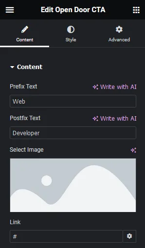 With this widget, you can create an interesting call to action hover effect on a text by showing an image with a door opening style.