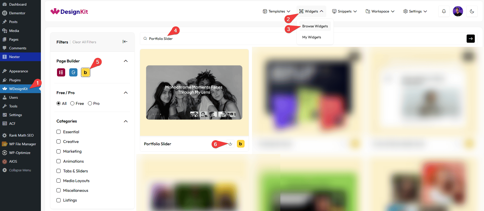 - WDesignKit → Widgets → Browse Widgets.