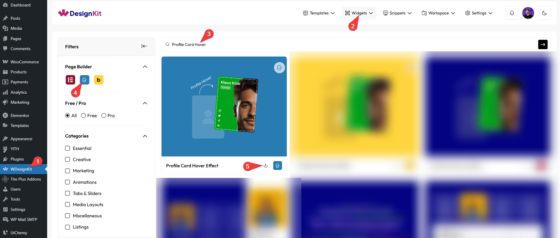 - Make sure you’ve downloaded the Profile Card Hover Effect block.