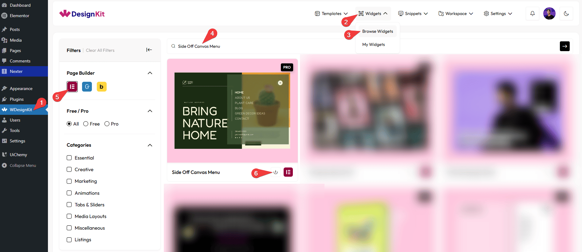 • Search the widget name and select Elementor as the Page Builder.