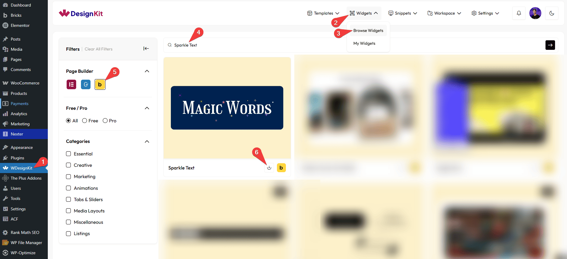 - WDesignKit → Widgets → Browse Widgets.