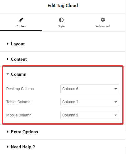 You can set the number of columns for your post type items separately for desktop, tablet, and mobile devices using the Desktop Column, Tablet Column, and Mobile Column sections, respectively.