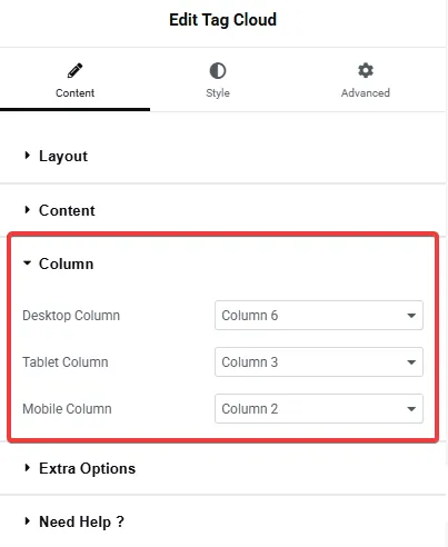 You can set the number of columns for your post type items separately for desktop, tablet, and mobile devices using the Desktop Column, Tablet Column, and Mobile Column sections, respectively.