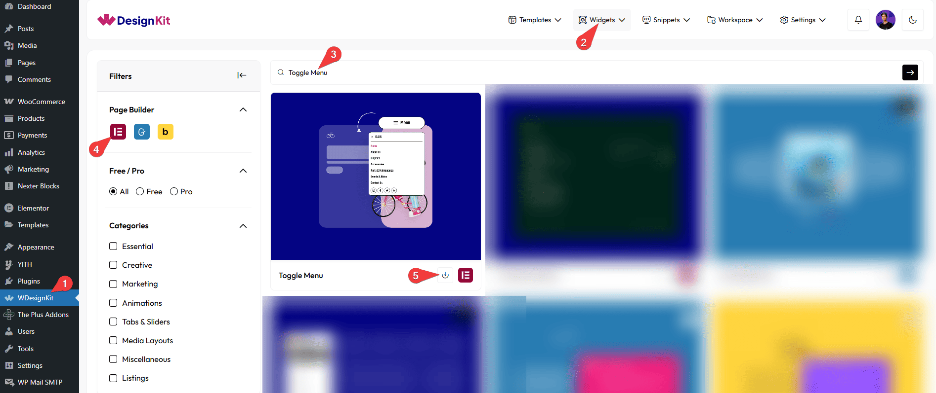 - Make sure you’ve downloaded the Toggle Menu widget.
