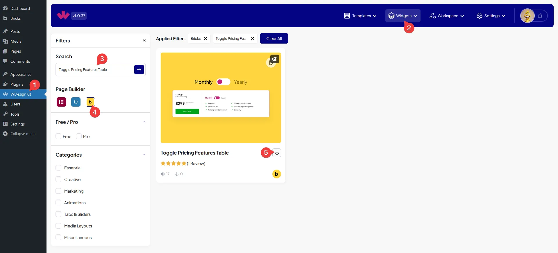 How to Use the Toggle Pricing Features Table Element in Bricks?